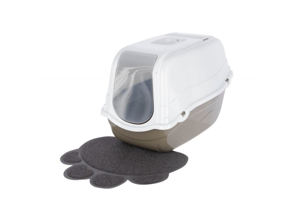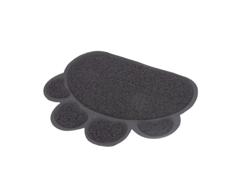 Protiskluzová rohožka před kočičí záchod z plastové tkaniny ve tvaru tlapky. Slouží k očištěníkočičích tlapekod zbytků steliva a jeho roznášení po domácnosti. Lze jednoduše vysát nebo vyklepat.