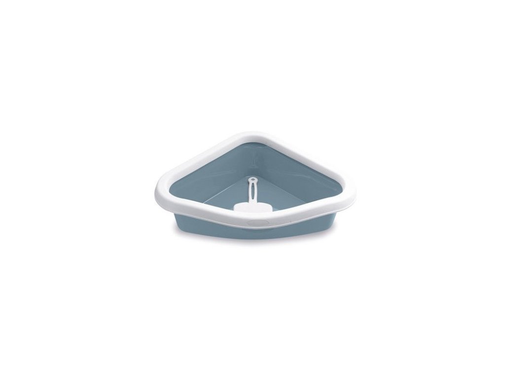 Toaleta pro kočky rohová - Sprint Corner, nekrytá, 56 x 46 x 14 cm, ocelově modrá