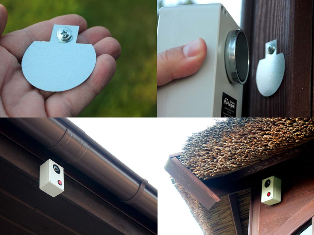 Odpuzovač Dragon Ultrasonic připevníte pomocí magnetického držáku snadno, rychle a bezpečně na téměř jakýkoliv povrch. Odpuzovač je vybaven silným magnetem, používaným v průmyslové upevňovací technice. Stačí tak kousek kovového povrchu, např. potrubí, zábradlí, okap, kovový parapet, střešní konstrukce, topení atd. a ihned máte bez jakékoliv montáže přístroj nainstalovaný. Pokud v ošetřovaném místě není žádný kovový povrch, na který by bylo možné odpuzovač umístit, je možné využít speciálního kovového přívěsku, který je součástí balení. Kovový přívěšek přišroubujete na požadované místo a poté na něj pomocí magnetu odpuzovač jednoduše připevníte.