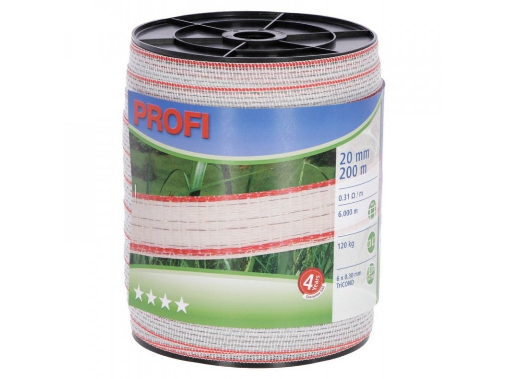 Páska PROFI pro el. ohradník, 20 mm x 200 m, 6x TriCOND 0,3 mm, bílo-červená