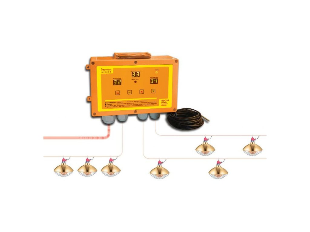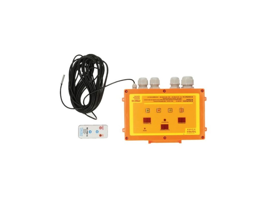 Termostat Interheat pro karbonové lampy s dálkovým ovladačem a topným senzorem o délce 10 m. Pomocí regulátoru lze docílit spolehlivé účinnosti a úspory energie.