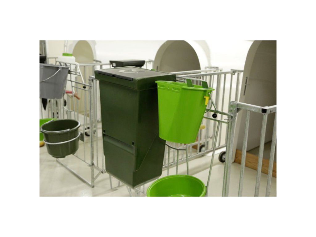 Krmný automat Feed Box Combo pro telata vhodný k instalaci na ohrádku boudy pro telata.